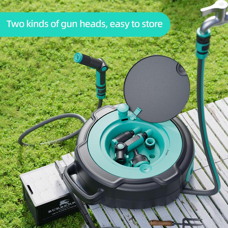 20 m slange med indbygget, holdbart havevandingsudstyr og slangeopruller  Leveres komplet med to forskellige brusepistoler samt nødvendige quick‑koblinger i det smarte låg, så du altid har det hele med. Justerbar, slidstærk, korrosions‑ og UV‑bestandig. Fleksibel og blød, pladsbesparende,  hurtig at tage i brug og let at rulle op og transportere. Velegnet til bil, sommerhus og campingvogn. og havevanding.